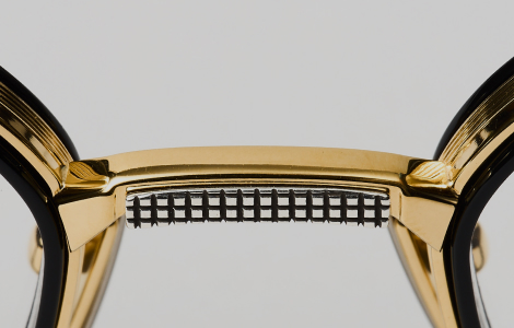 チタンシリーズの中でも人気のラウンドモデル「RADIO CITY」。18Kゴールドとチタンを直接つなぎ合わせるMASUNAGAならではの技術を駆使してつくりました。人を選ばずにかけやすく、洗練されたその佇まいこそ、特別といえる逸品。